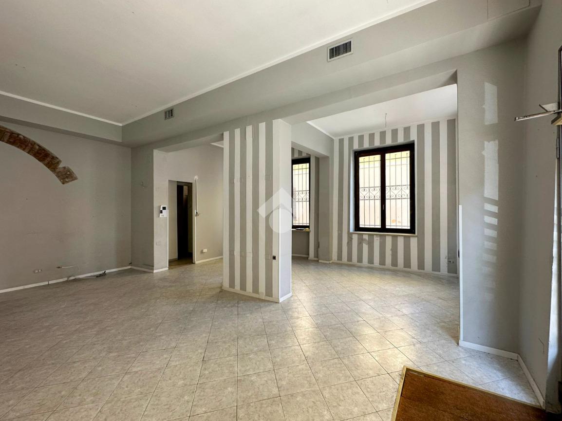 Il locale è ubicato al piano terra di un edificio di tre piani e si estende su una superficie, divisa da pareti, di circa 140 mq. La soluzione proposta vanta di due vetrine fronte strada.