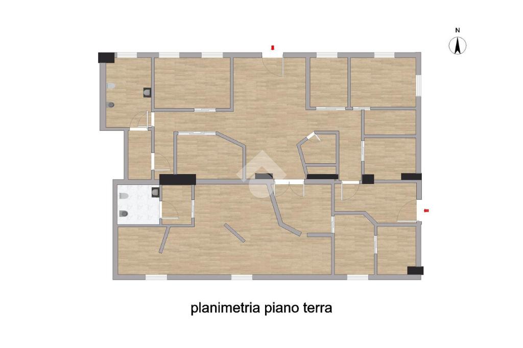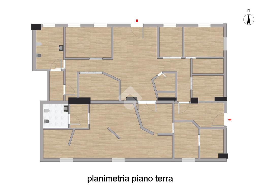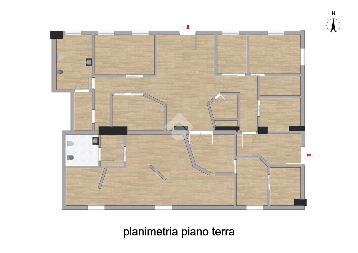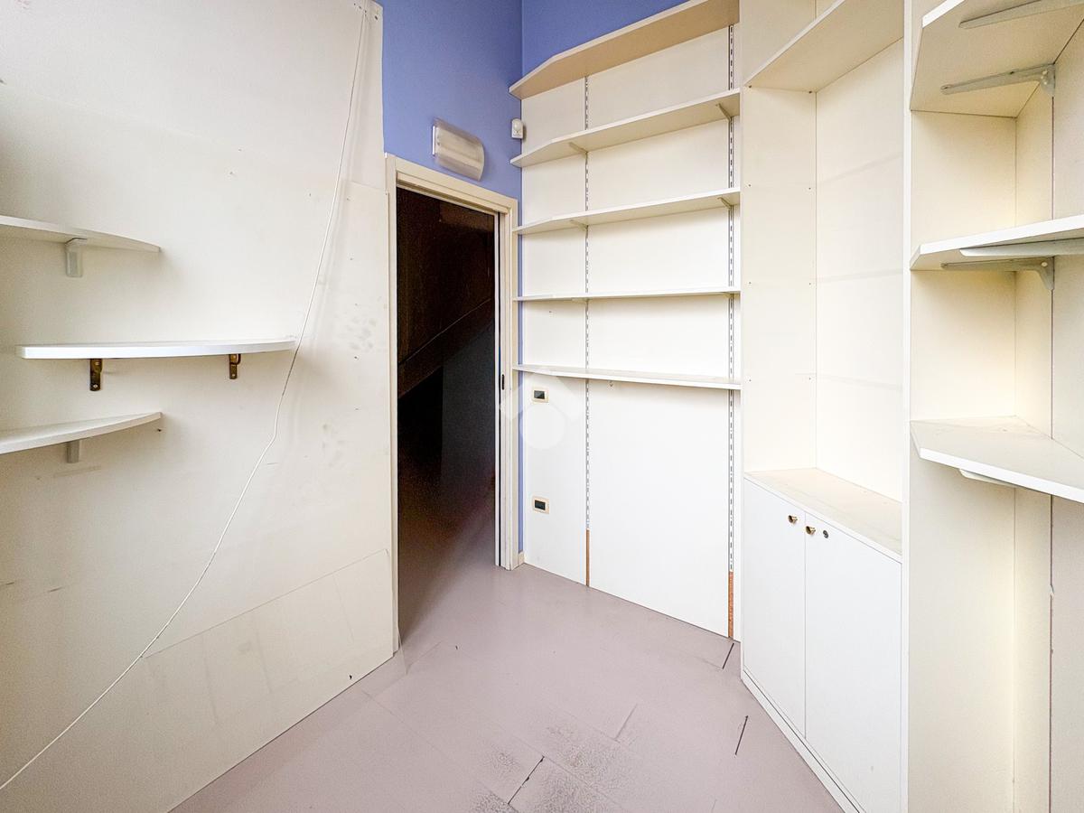 Il locale si sviluppa interamente al piano terra per una superficie complessiva di circa 140 mq, attualmente suddivisa in 12 ambienti, offrendo così grande versatilità nella distribuzione degli spazi. Si segnala la presenza di un lieve dislivello interno, costituito da tre gradini, pur trattandosi di una soluzione al piano terra.